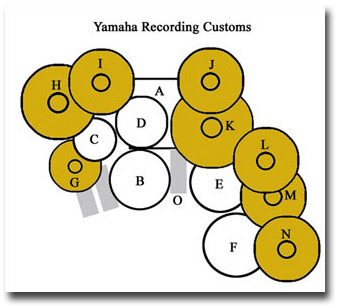 A. 22" Bass Drum Completely rack mounted on a 4'x4'x12" rolling riser. |